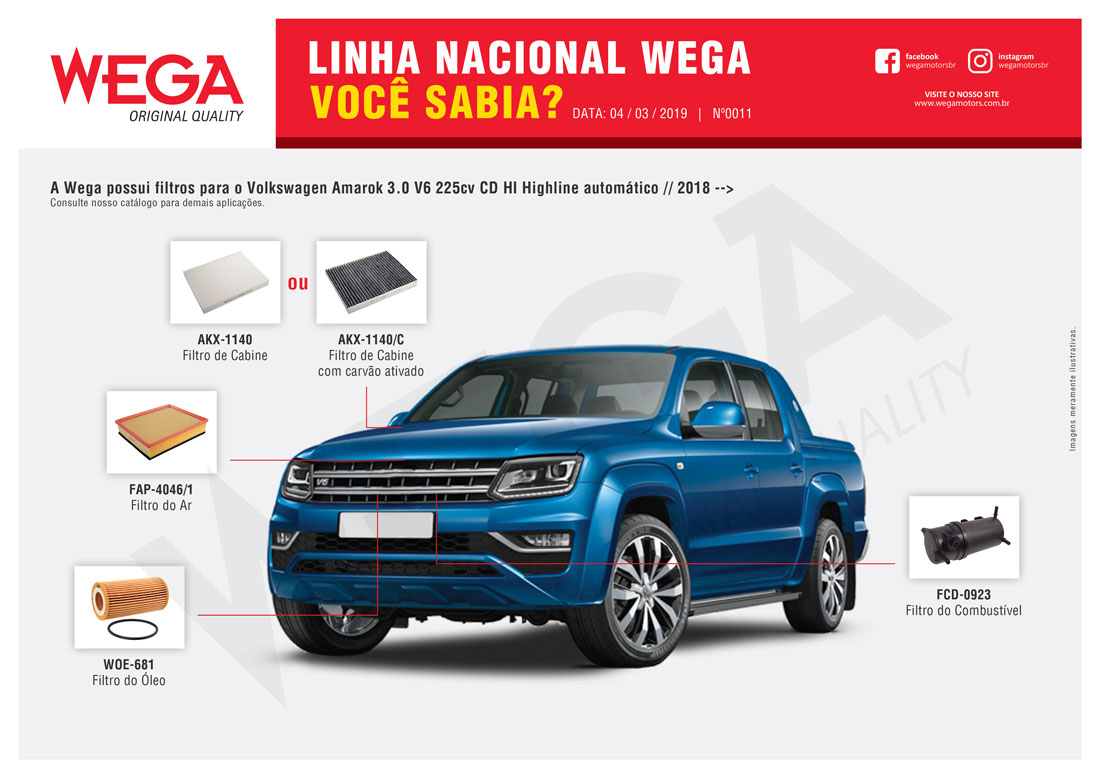 A Wega possui filtros para o Volkswagen Amarok 3.0 V6 225cv CD HI Highline automático // 2018 –>